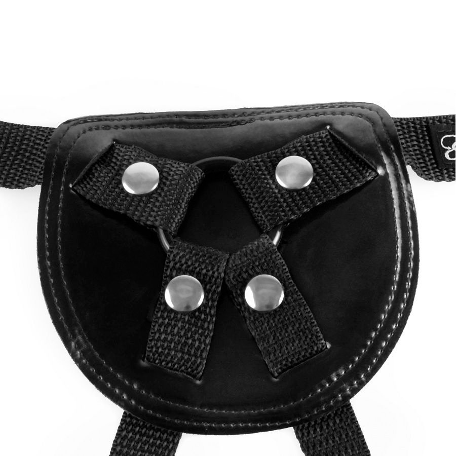 Fabricado con tela de charol en el exterior y neopreno en el interior, este arnés respeta tu piel y ofrece un tacto suave y seguro. Además, cuenta con broches de seguridad para mantener tu dildo firmemente en su lugar.
